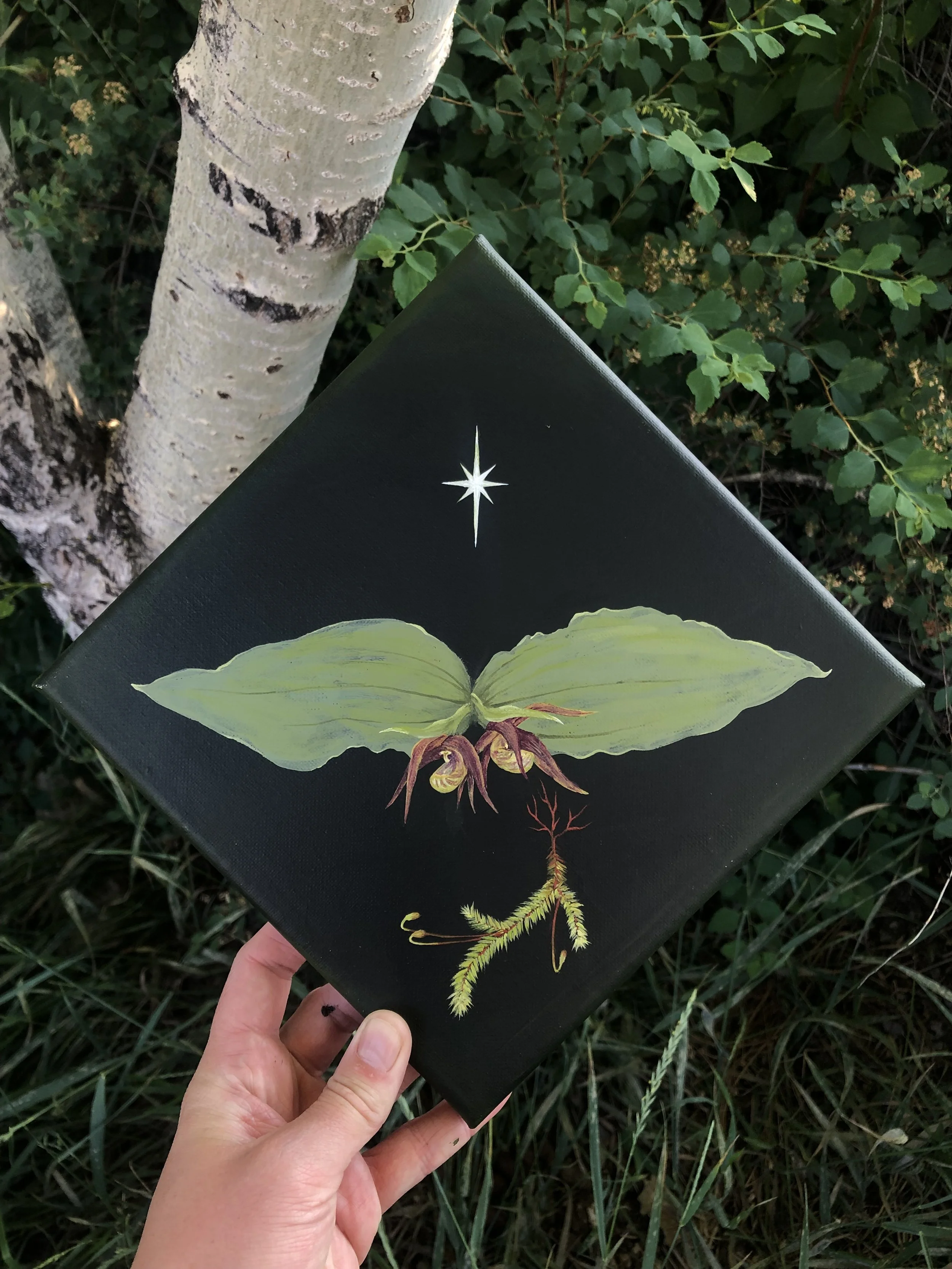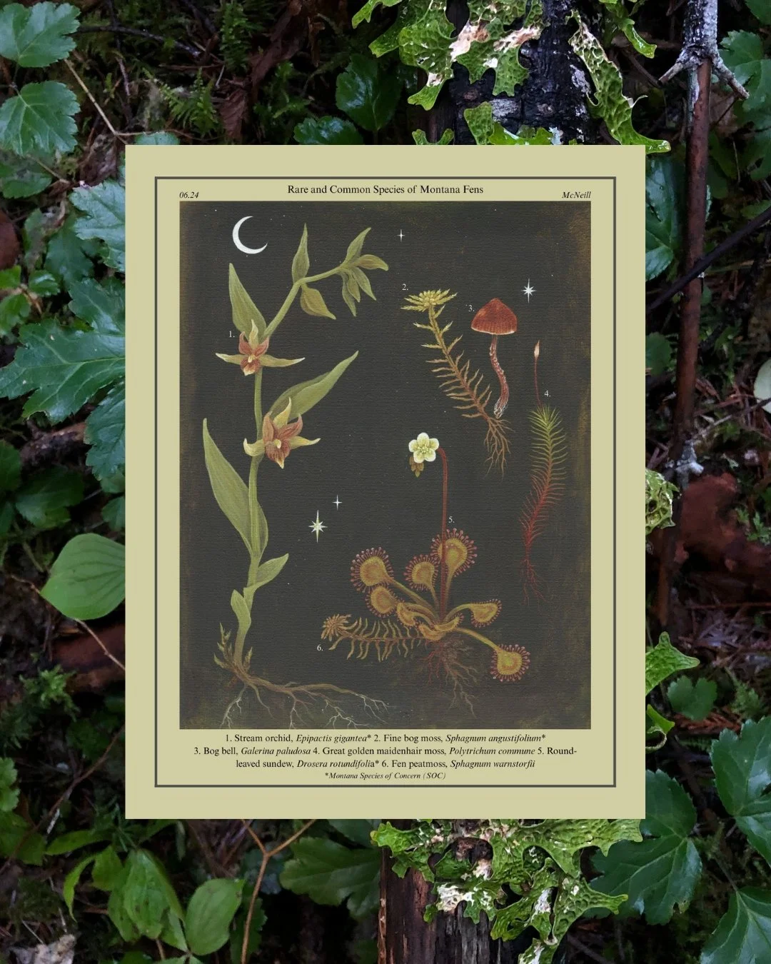 Up Moss Creek Studio is a habitat for experimentation created by Erynn McNeill where they use their knowledge and experience in mycology, botany, and 19th century scientific illustration to create acrylic paintings, hand-painted wood accessories and specimen curiosities inspired by western Montana ecology.