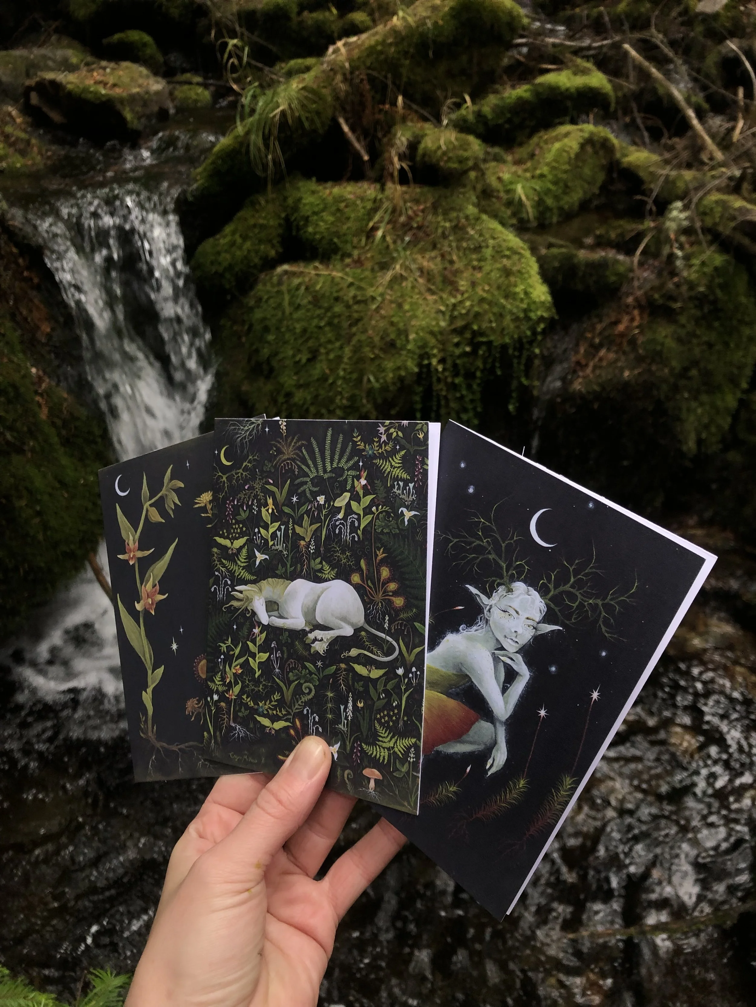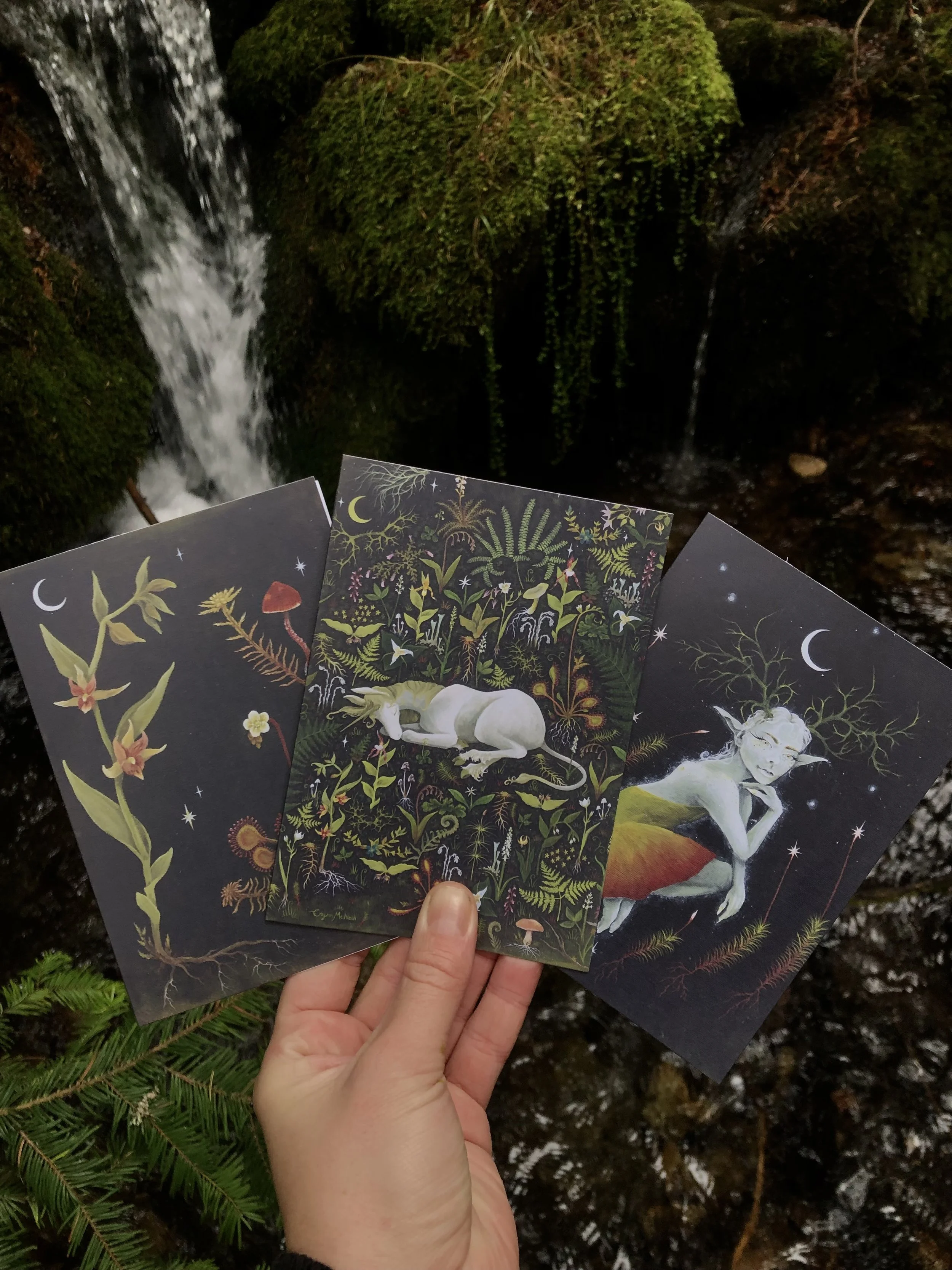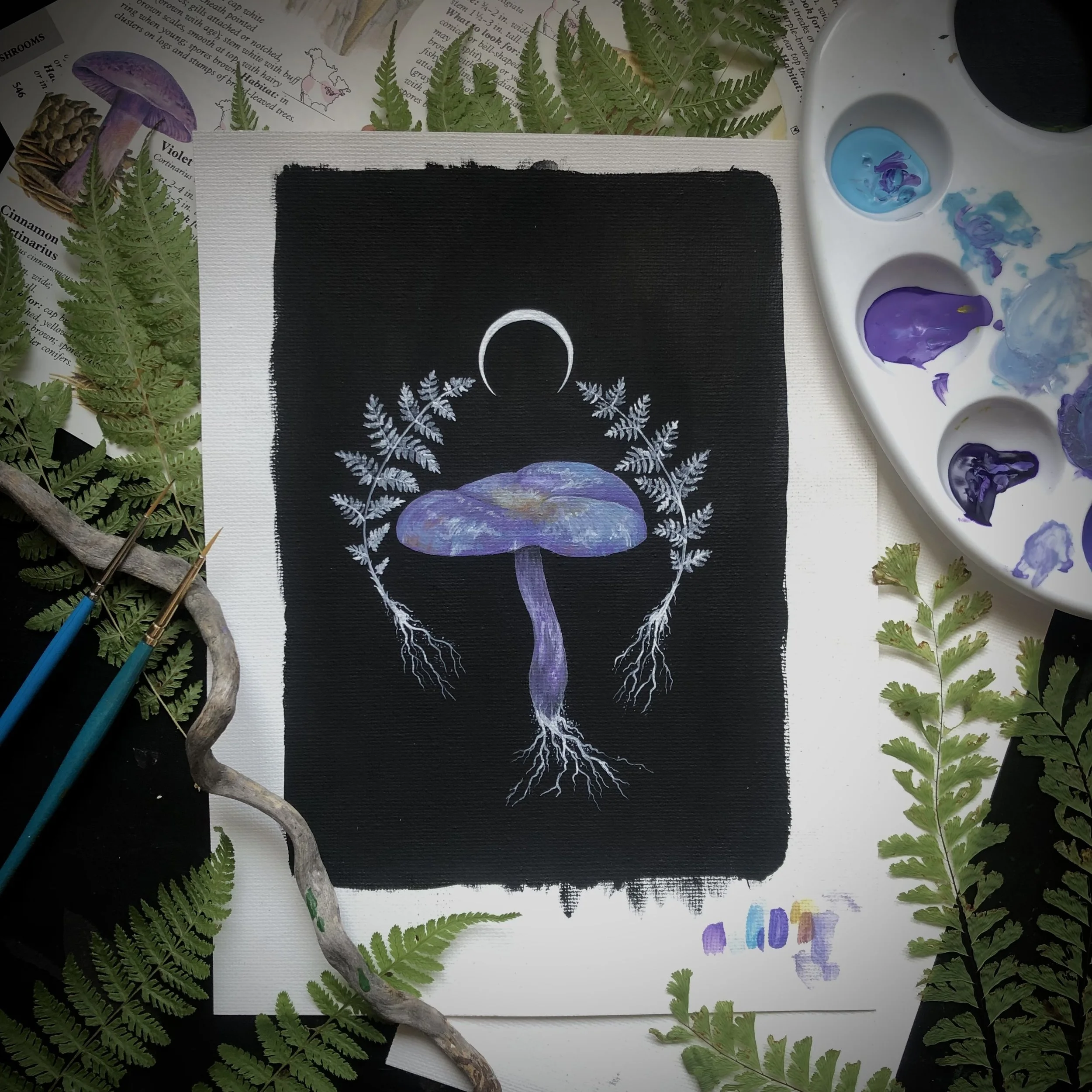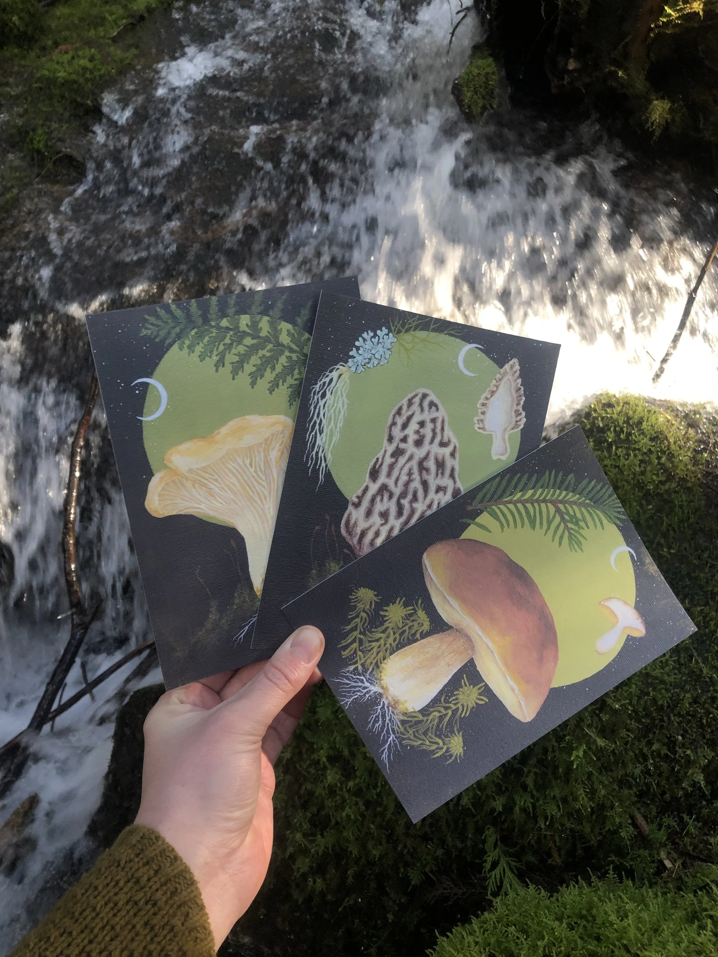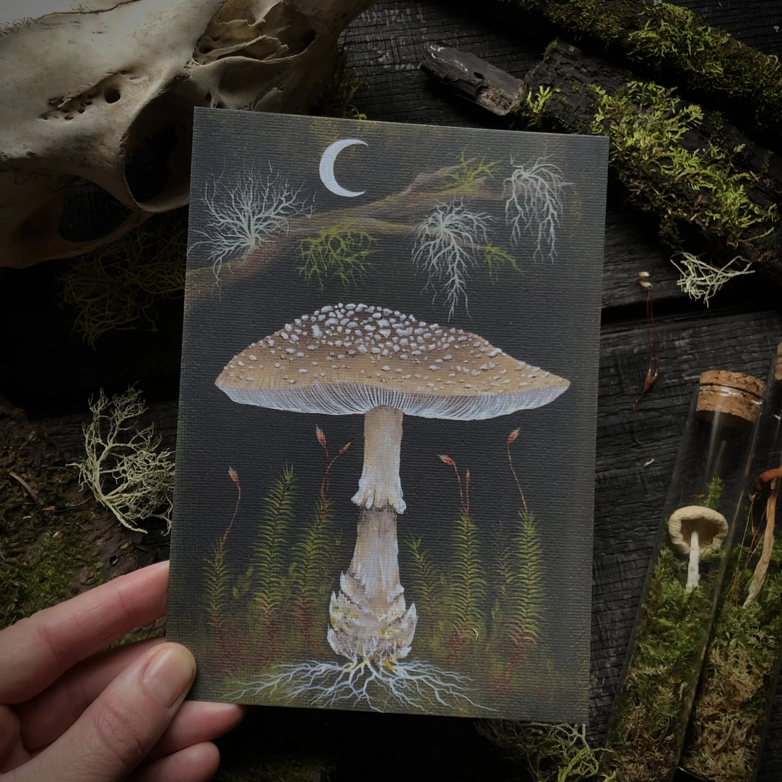 Up Moss Creek Studio is a habitat for experimentation created by Erynn McNeill where they use their knowledge and experience in mycology, botany, and 19th century scientific illustration to create acrylic paintings, hand-painted wood accessories and specimen curiosities inspired by western Montana ecology.